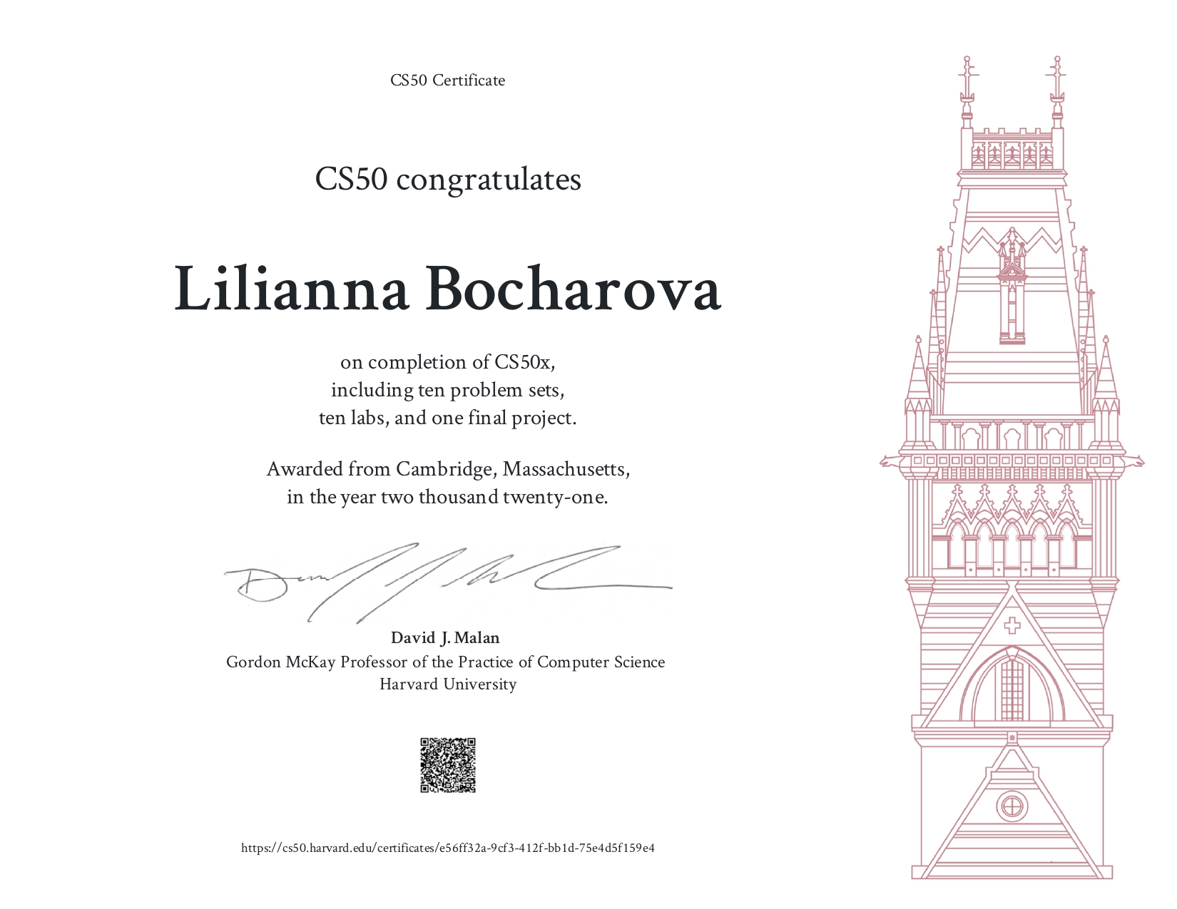 Получила сертификат Гарвардский курс CS50